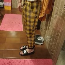Good pants, unpleasant smell do not have, the material slightly sticks to the body, the length to the ankle, the height of 164 took m size, slightly larger.